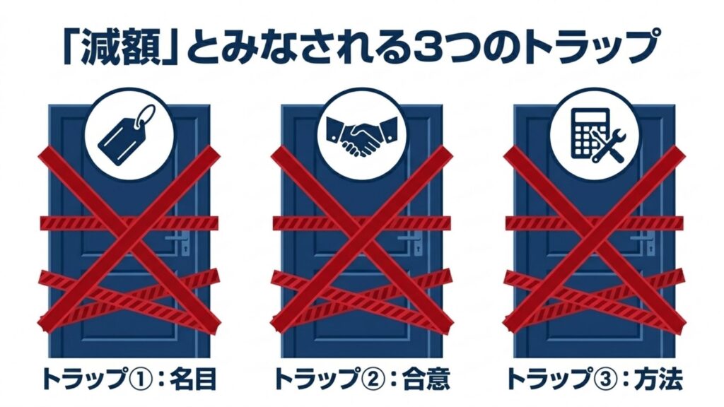 ここで、「減ずる」という言葉について、実務上誤解しやすいポイントを、3つ見ておきましょう。